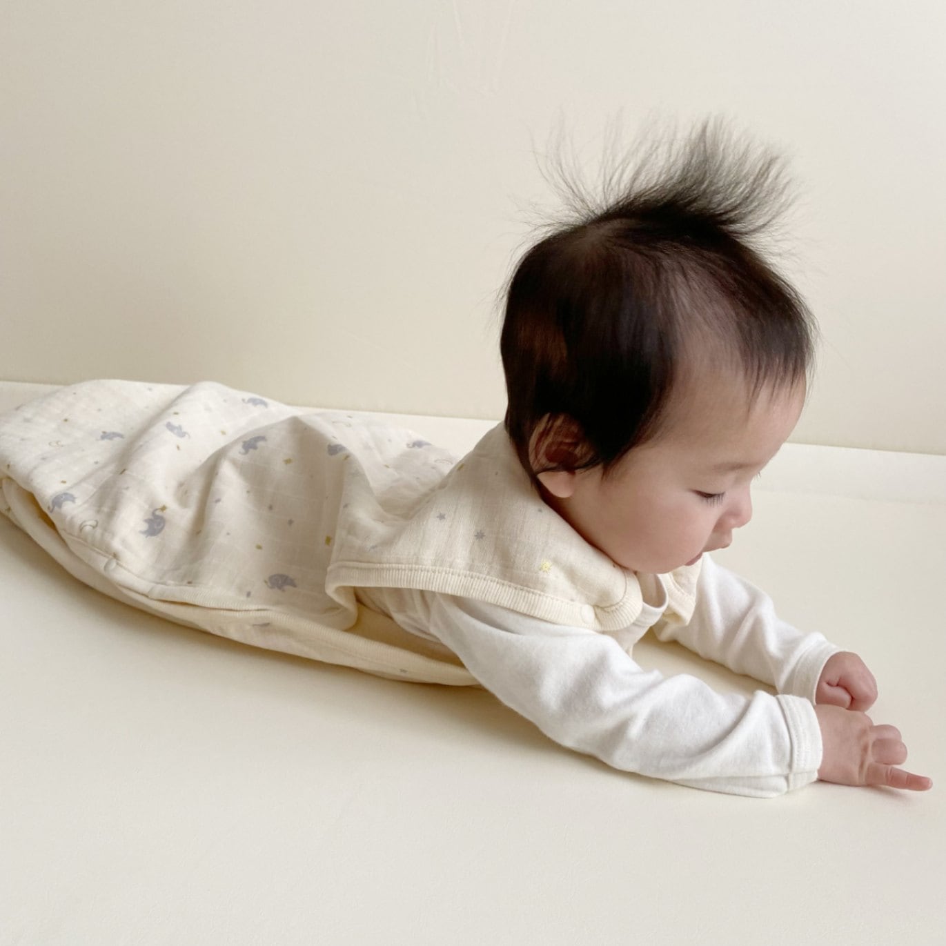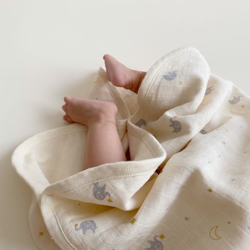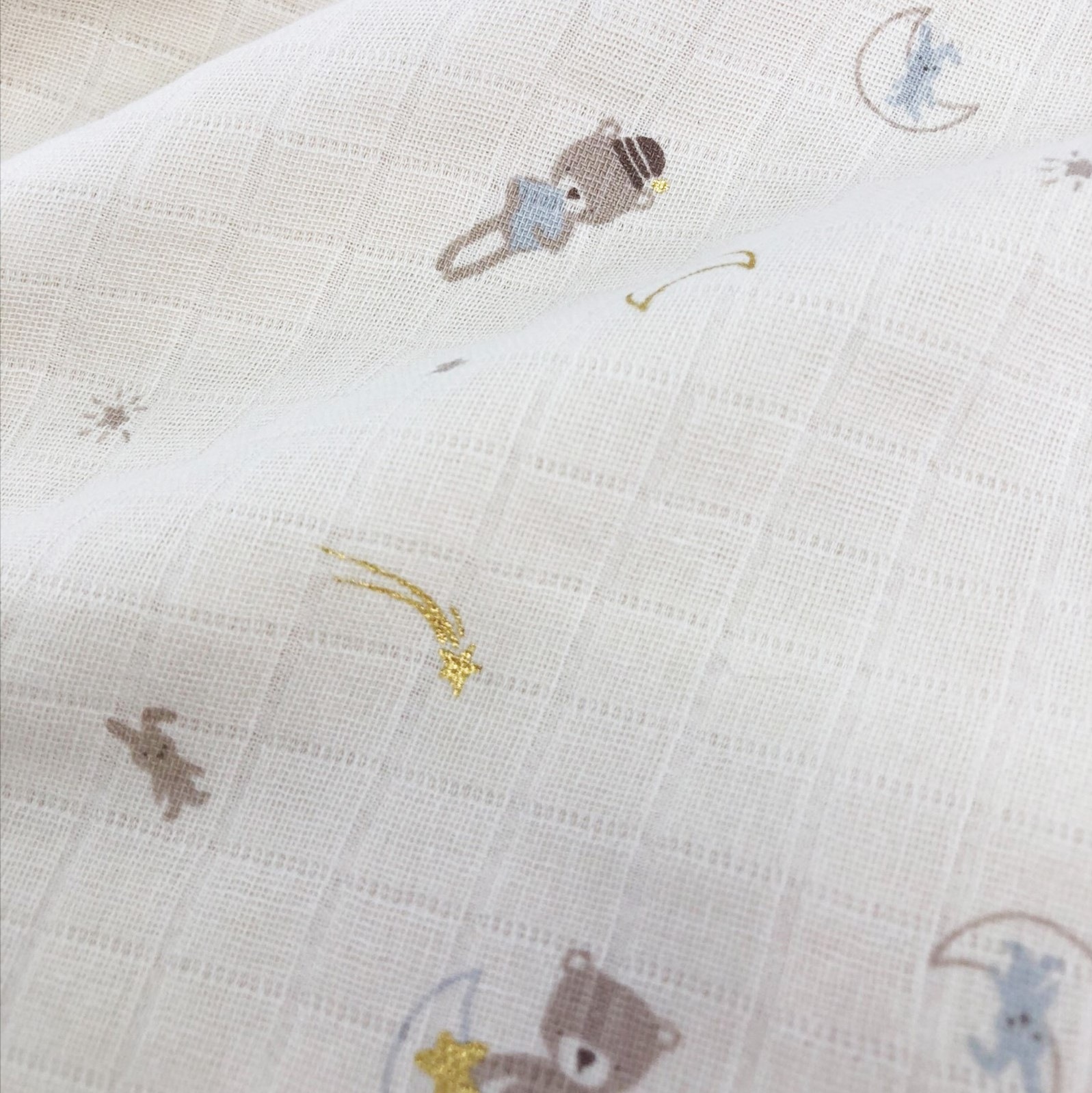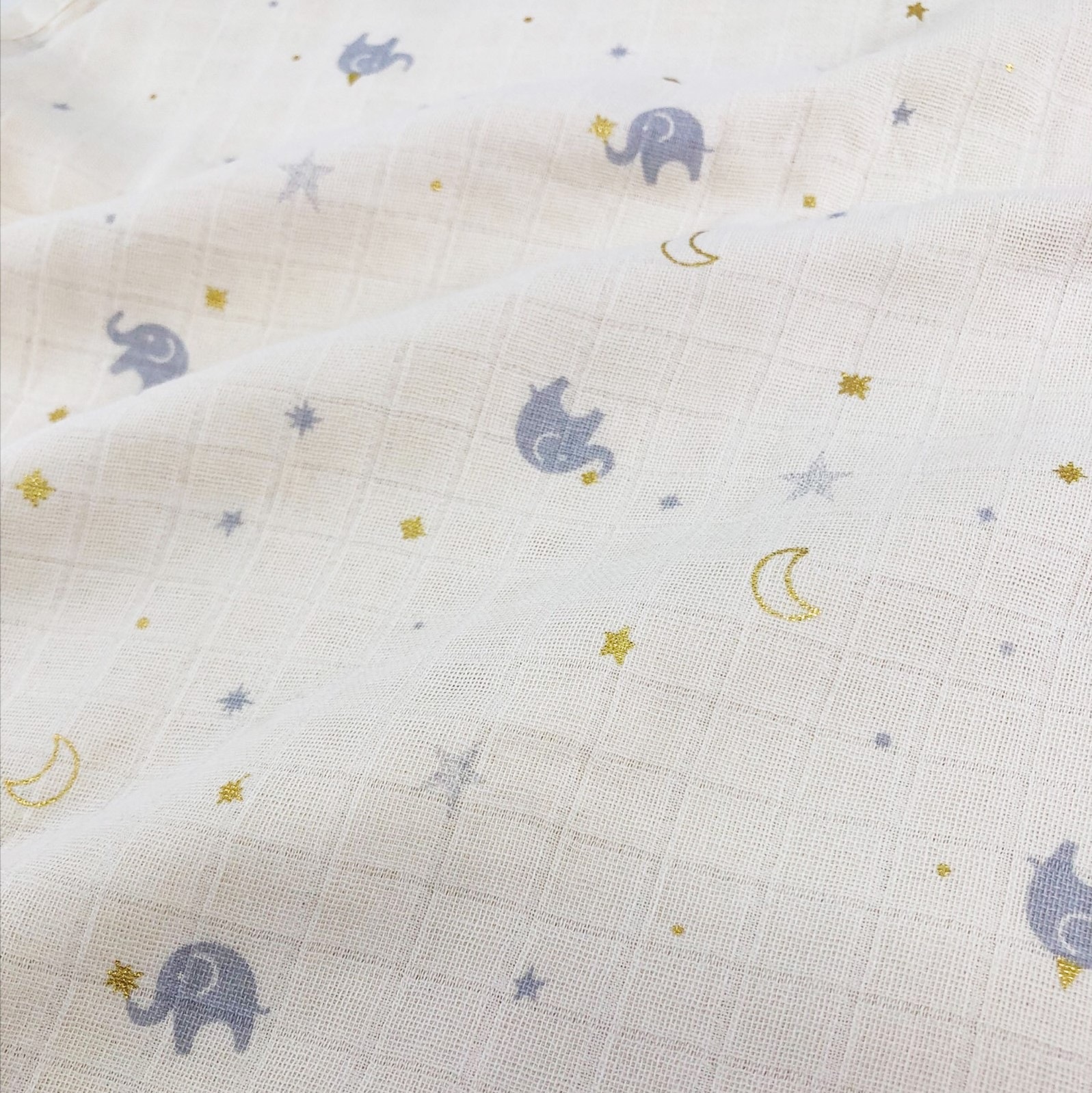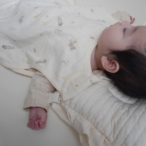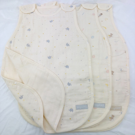 新生児から通年使える、ガーゼスリーパー。箔デザイン♪ <素材> 本体 綿100% <サイズ> 約W410×H580mm ※洗濯後